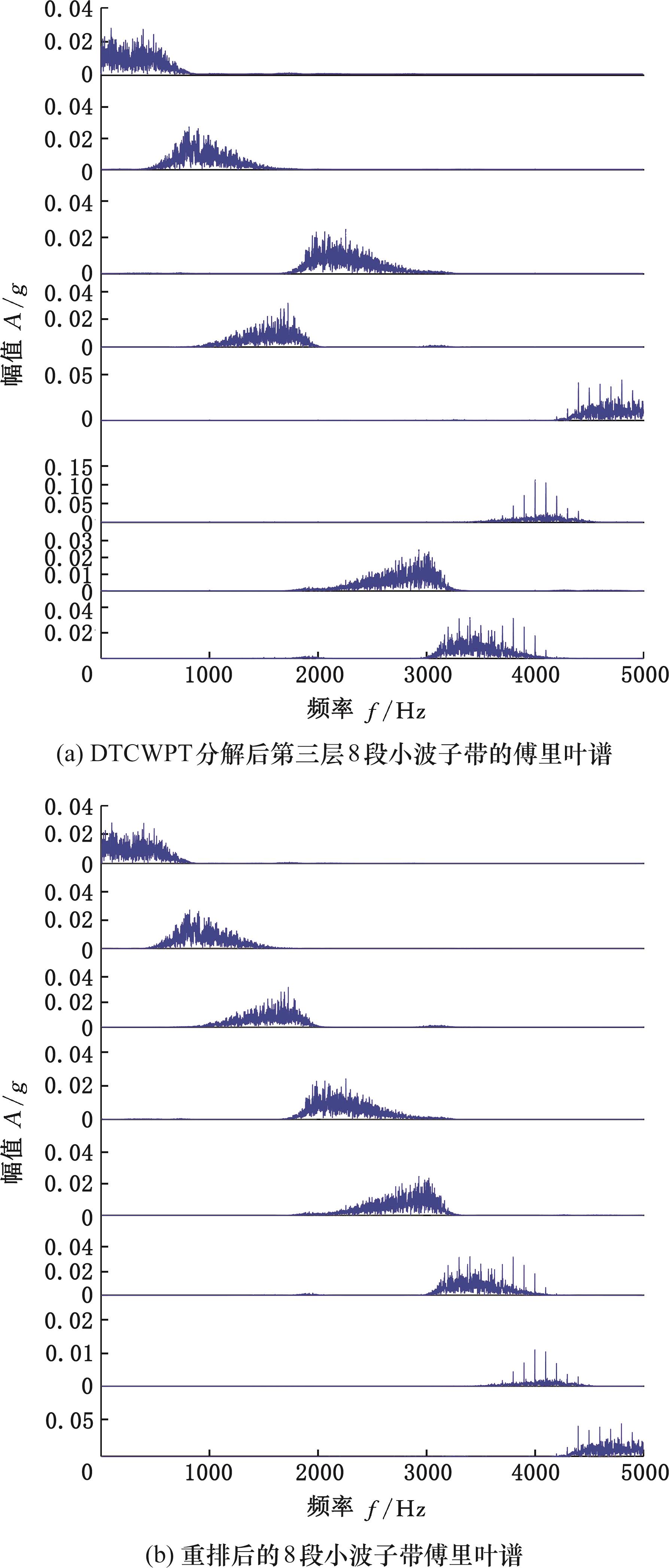 为实现滚动轴承微弱特征提取与故障诊断,提出了一种基于子带重构重排-双树复小波包变换(SRR-DTCWPT)与峰值频率提取的共振解调新方法。基于SRR-DTCWPT的频带划分方法较为精细,并且在保持DTCWPT近似平移不变性和谱能量泄漏少的优点的同时解决了频带错乱的问题。基于SRR-DTCWPT与峰值频率提取的共振解调方法不需要任何指标参与,能提取任意位置的频带,避免了强冲击干扰的影响,且计算过程自动化。将所提方法与Fast Kurtogram和Autogram算法进行比较,验证了该方法在滚动轴承故障诊断中的有效性与高效性。