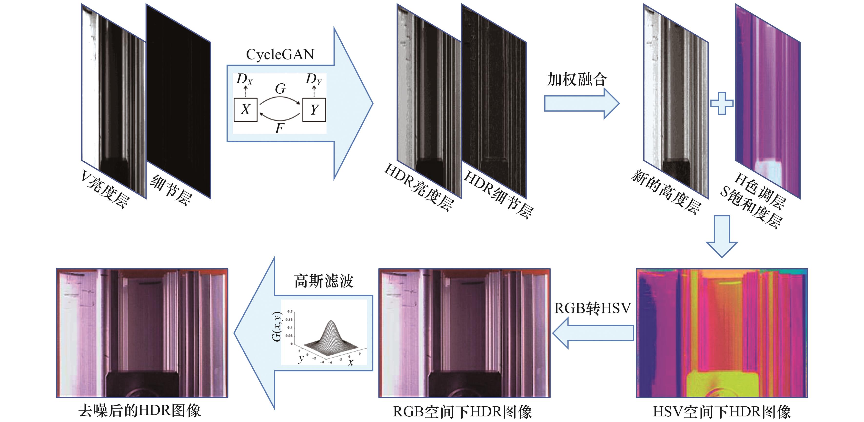 Key words: highly reflective metal, single-exposure high dynamic range(HDR) imaging, detail enhancement, cycle-consistent generative adversarial network (CycleGAN)