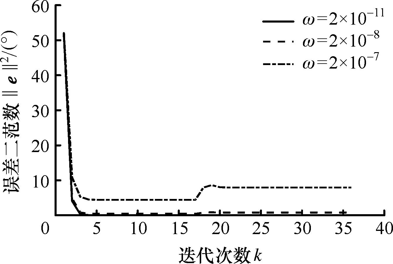 表3 η = 2×10-7时不同 ω 下的最大控制信号