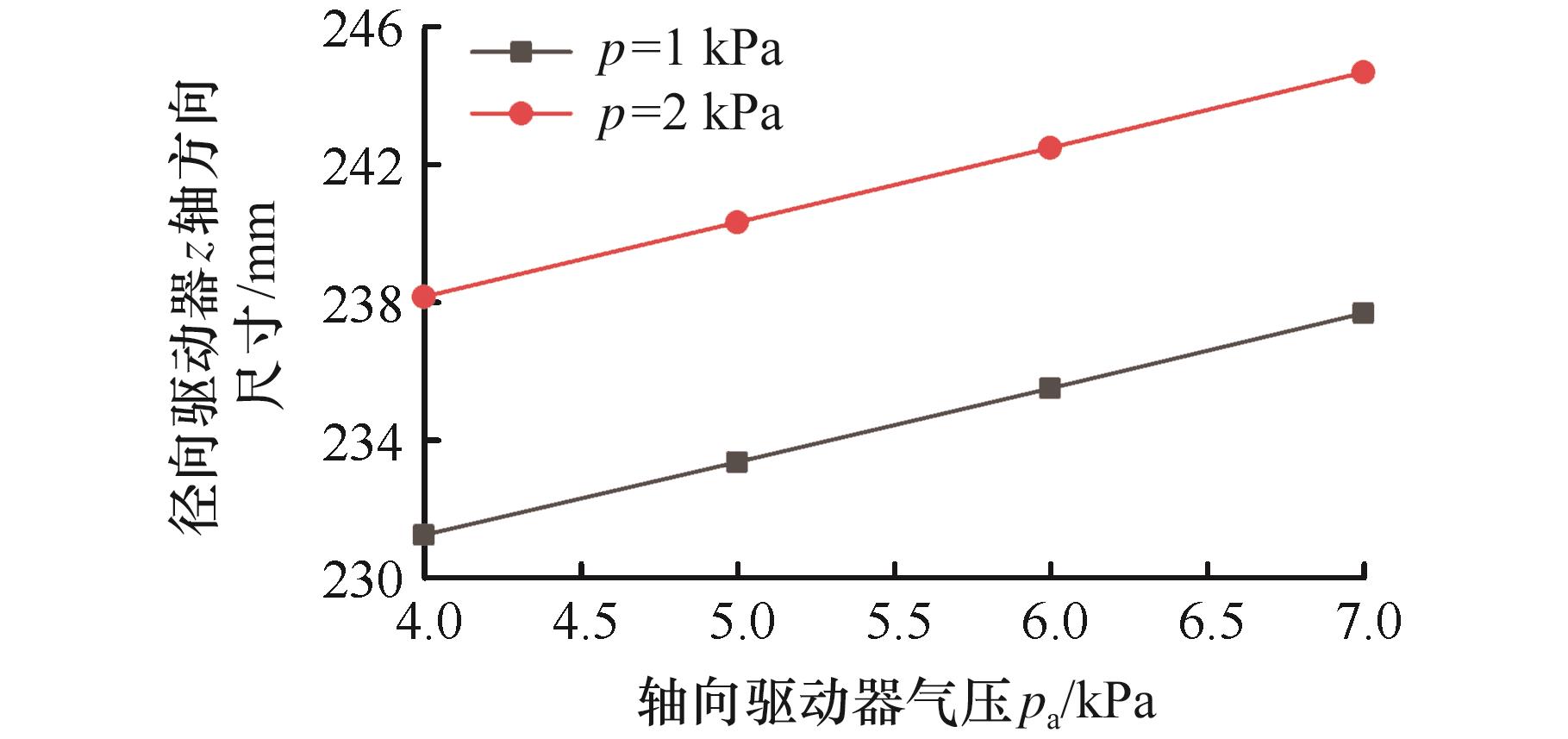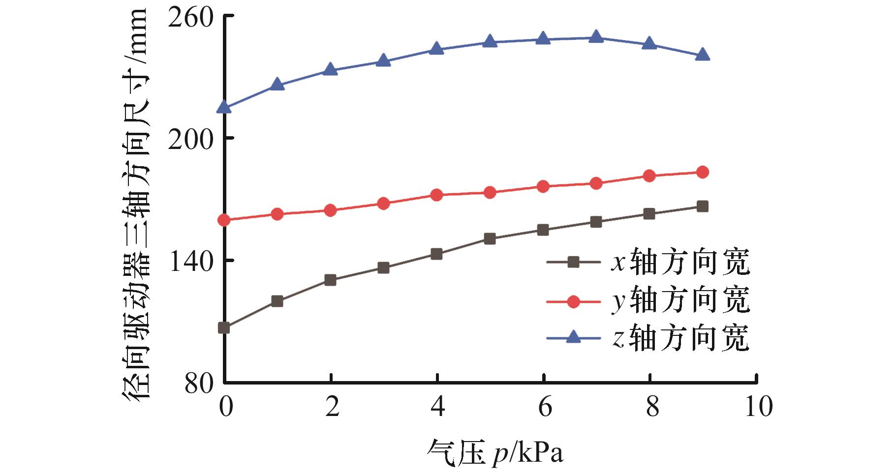 表3 双驱动器仿肺机器人x、y轴方向尺寸变化