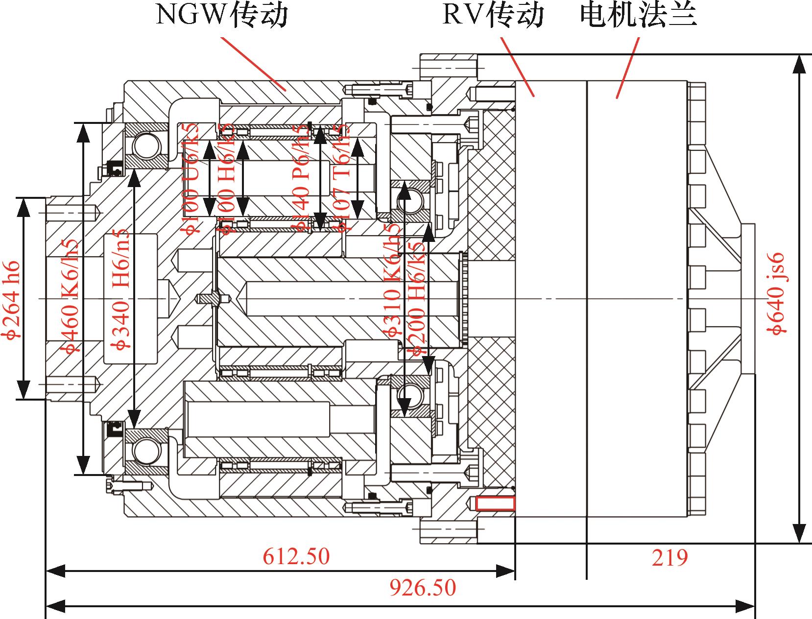 为减小堵塞度,严格控制某大型连续式跨声速风洞双转轴机构装备尺寸,研制出一种用于大负载双转轴机构的小体积、高扭矩、高传动精度的减速单元。通过对比分析渐开线行星、摆线针轮、谐波及蜗轮蜗杆传动等常用精密减速方式,提出了成熟摆线针轮RV传动与NGW行星传动串联组合的精密重载传动方式。基于ISO 6336、序列二次规划算法、有限元法对行星减速器进行优化设计及关键零部件强度分析,计算行星传动单元的回差与传动误差,对减速器进行了精度理论分析。其中,小齿隙行星传动加工及装配为其关键技术,突破了内齿圈及行星架精密加工、齿轮热处理变形控制与高精磨齿、整机复杂结构装配调整技术。研制专用试验台对该精密重载减速器进行传动性能测试,然后对其进行风洞验证,证明了所研制的减速单元满足某大型连续式跨声速风洞双转轴机构应用要求。