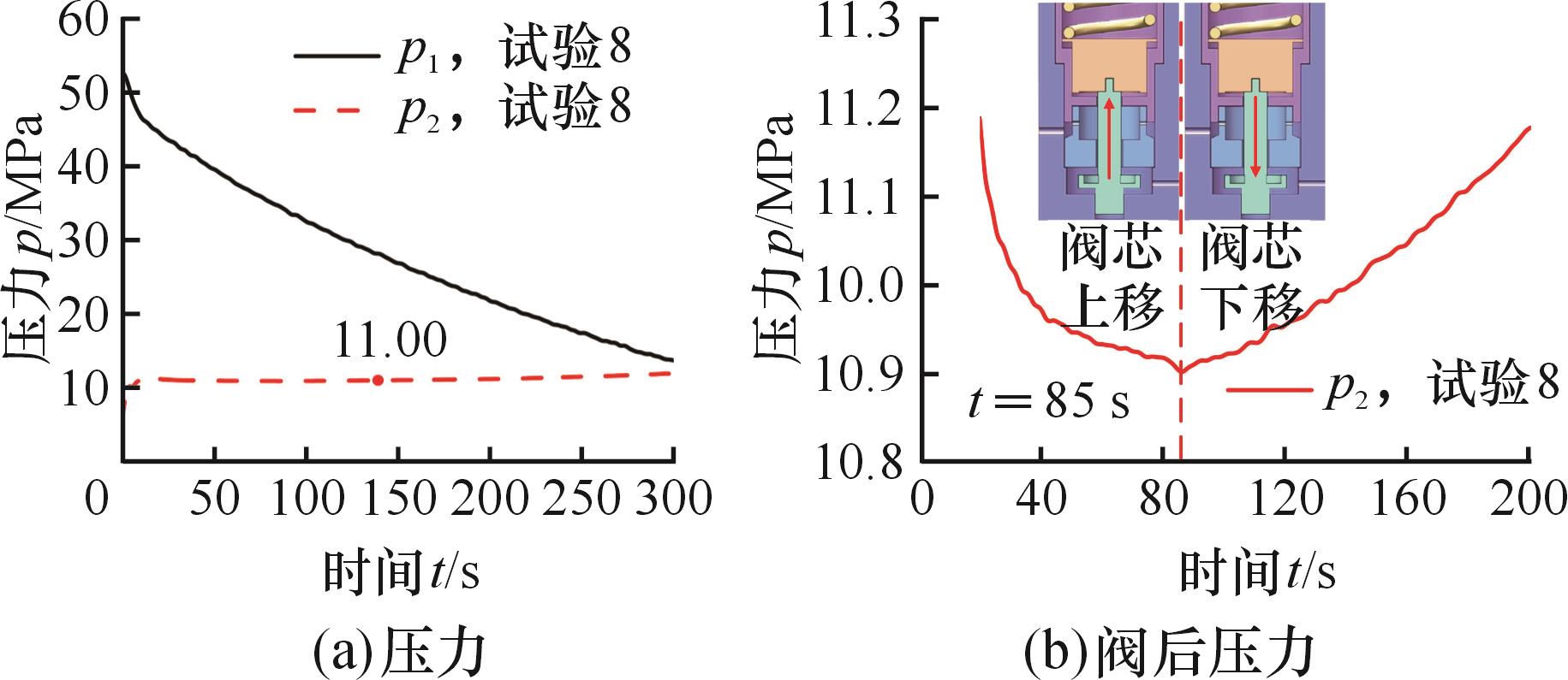 气体管路系统中常使用减压阀来控制下游压力,目前常规小型减压阀的降压幅度较小,难以满足超高压下的降压需求。提出了一种超高压条件下输出压力可调的小型减压阀,其输入压力为19~60 MPa,输出压力为7~13 MPa。通过建立试验平台、设置不同的减压阀上游压力和下游阻力,研究了减压阀在四类工况下工作性能的稳定性以及特性参数的变化。经过试验验证,该减压阀可以在超高压使用场景下维持下游压力稳定,管路接通后减压阀的响应时间为0.5~6.0 s,响应后10 s内的压力波动幅度为0.12%~4.49%。结果表明:减压阀阀后压力变化趋势与上游压力有关,上游压力减小时输出压力先减小再增大,上游压力稳定时输出压力有减小的趋势。研究结果可指导该型减压阀在气体管路系统中的应用。