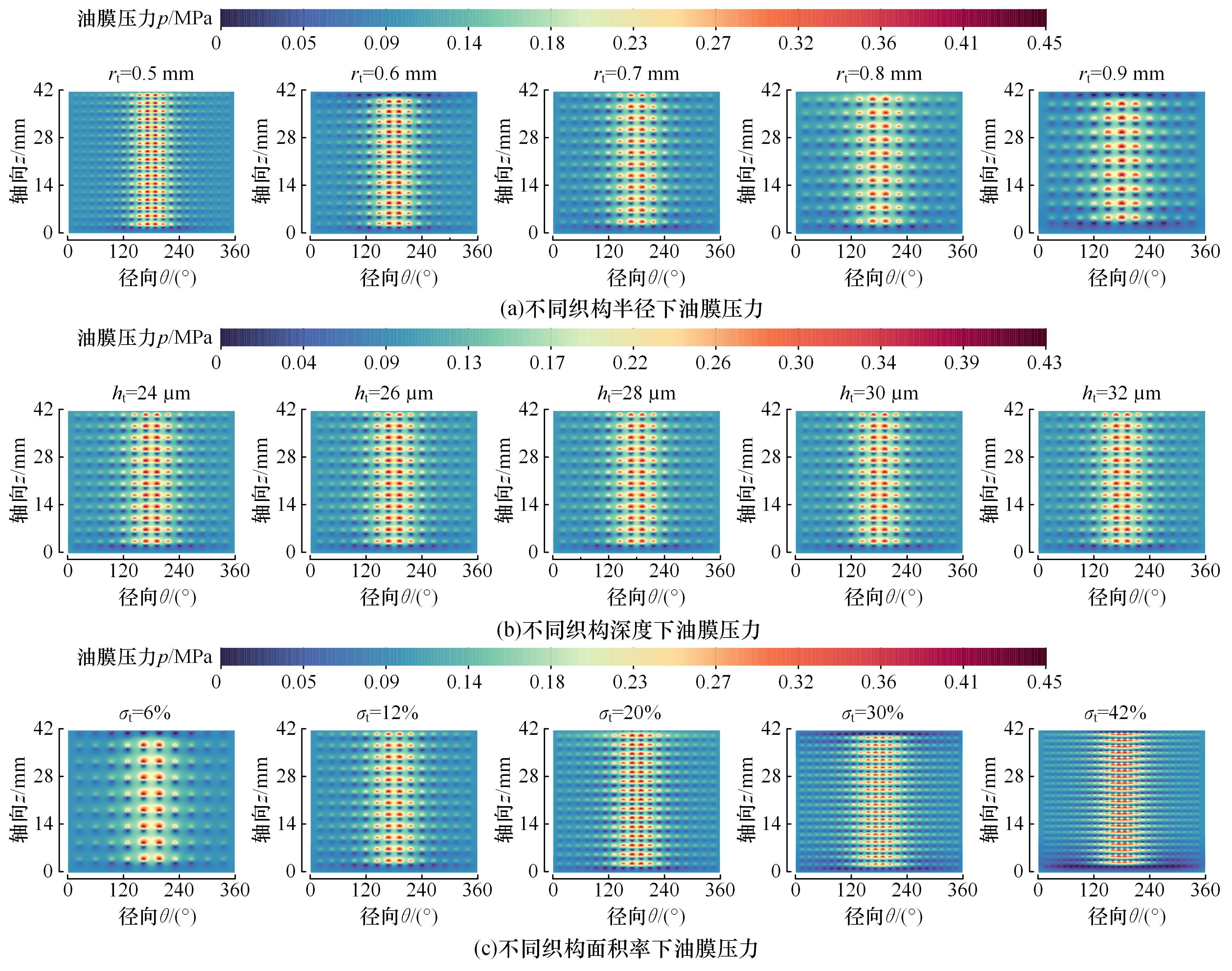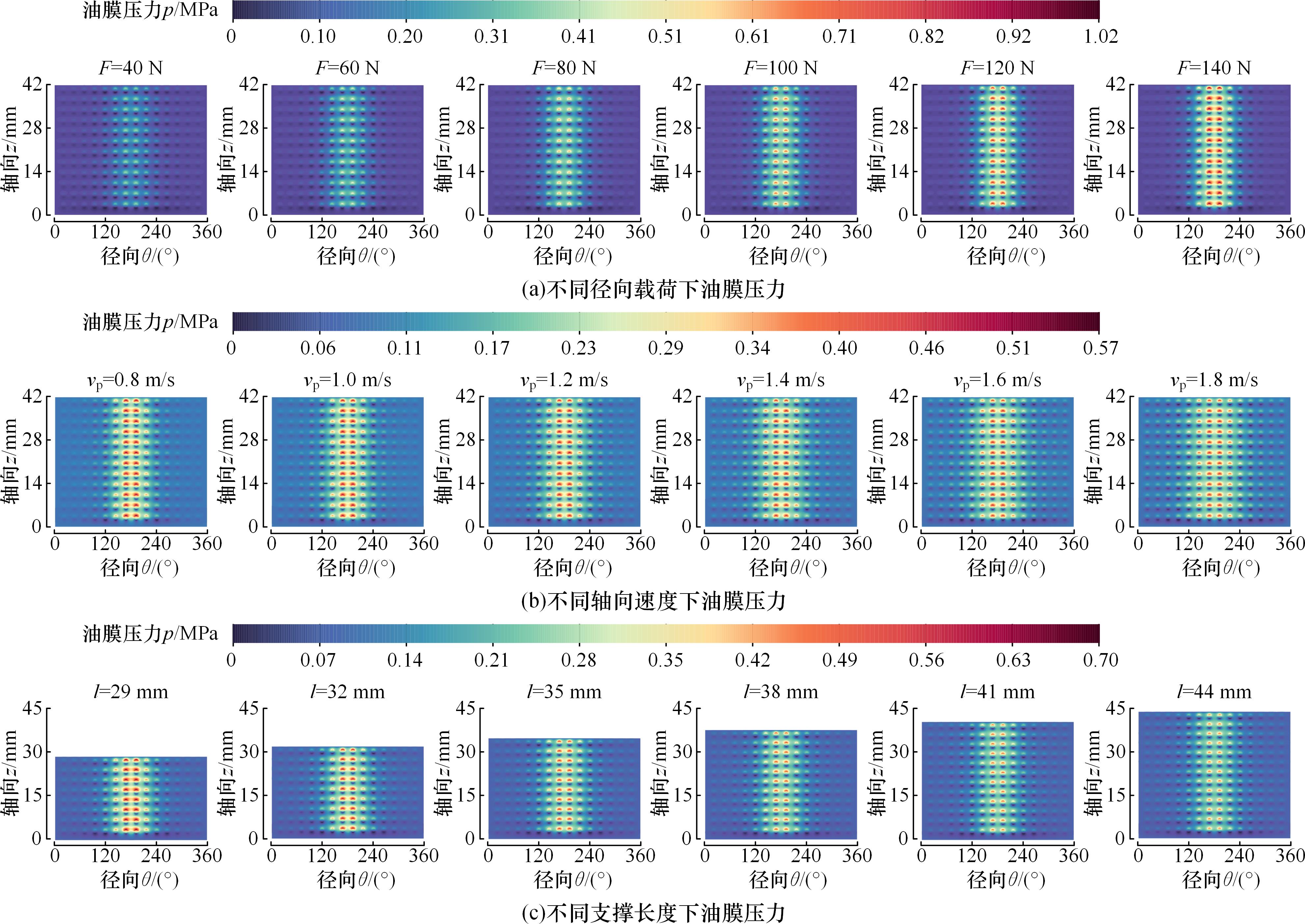 柱塞副的润滑状态是决定轴向柱塞泵使用寿命的关键,因此提出一种织构化柱塞副以降低低压程油膜的失效风险。针对柱塞副的支撑长度可变,基于动态节点网格建立了一种柱塞副织构化表面润滑模型。采用有限差分法对压力方程进行离散处理,通过油膜压力和偏心量的双层循环获取织构化表面的压力和膜厚分布,分析工况参数和织构参数对润滑特性的影响。研究结果表明:更大的织构半径和织构面积率对柱塞副的润滑减摩效果更好,减摩作用的影响顺序(从高至低)为:织构面积率,织构半径,织构深度;增大织构半径和减小织构深度均可增强油膜的承载能力,且30%的织构面积率具有更高的工况适应度;结合负载试验,织构化试件的摩擦因数较无织构时的摩擦因数最大降幅可达29.8%。研究结果可为轴向柱塞泵的摩擦学设计提供参考。