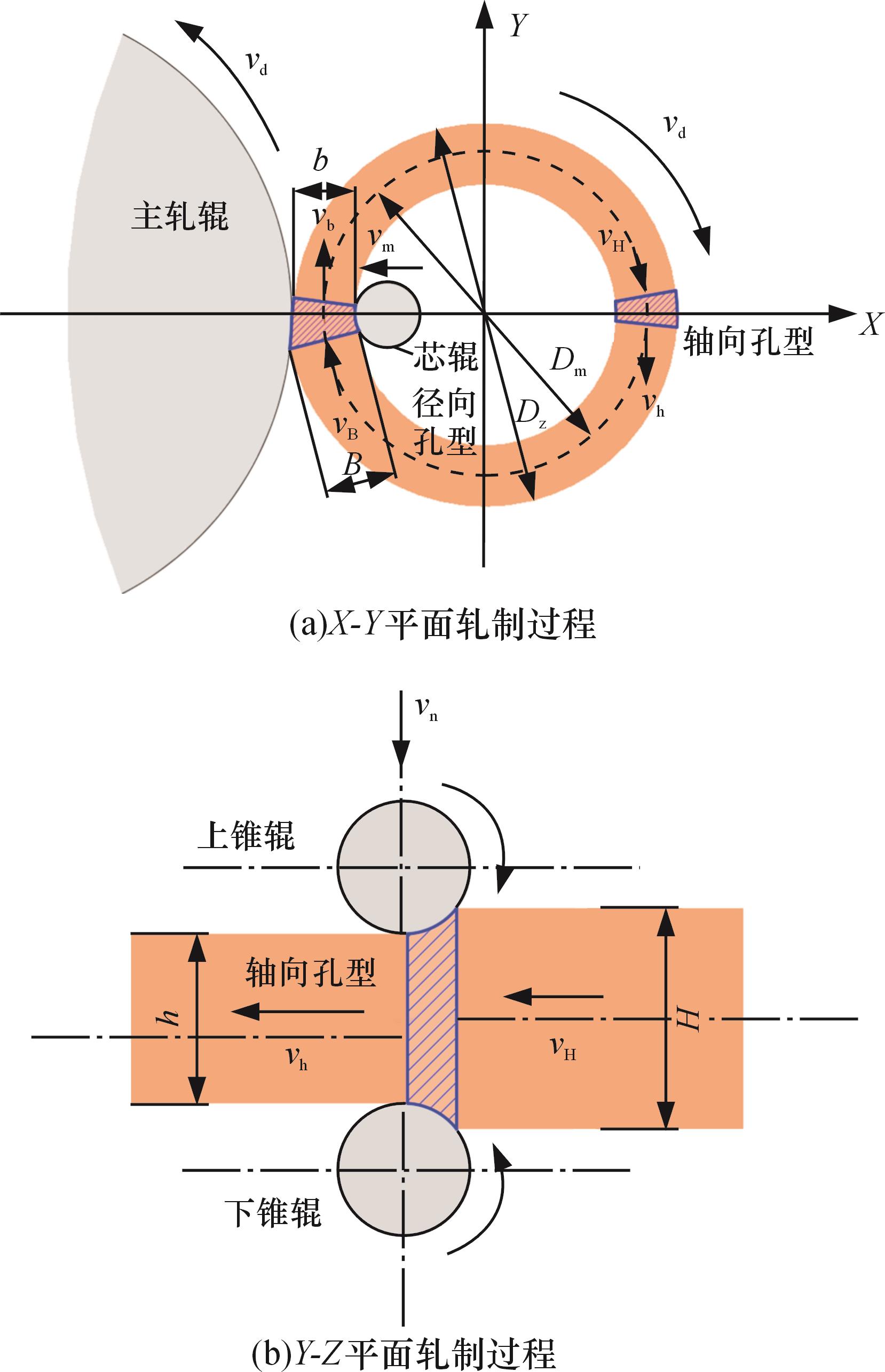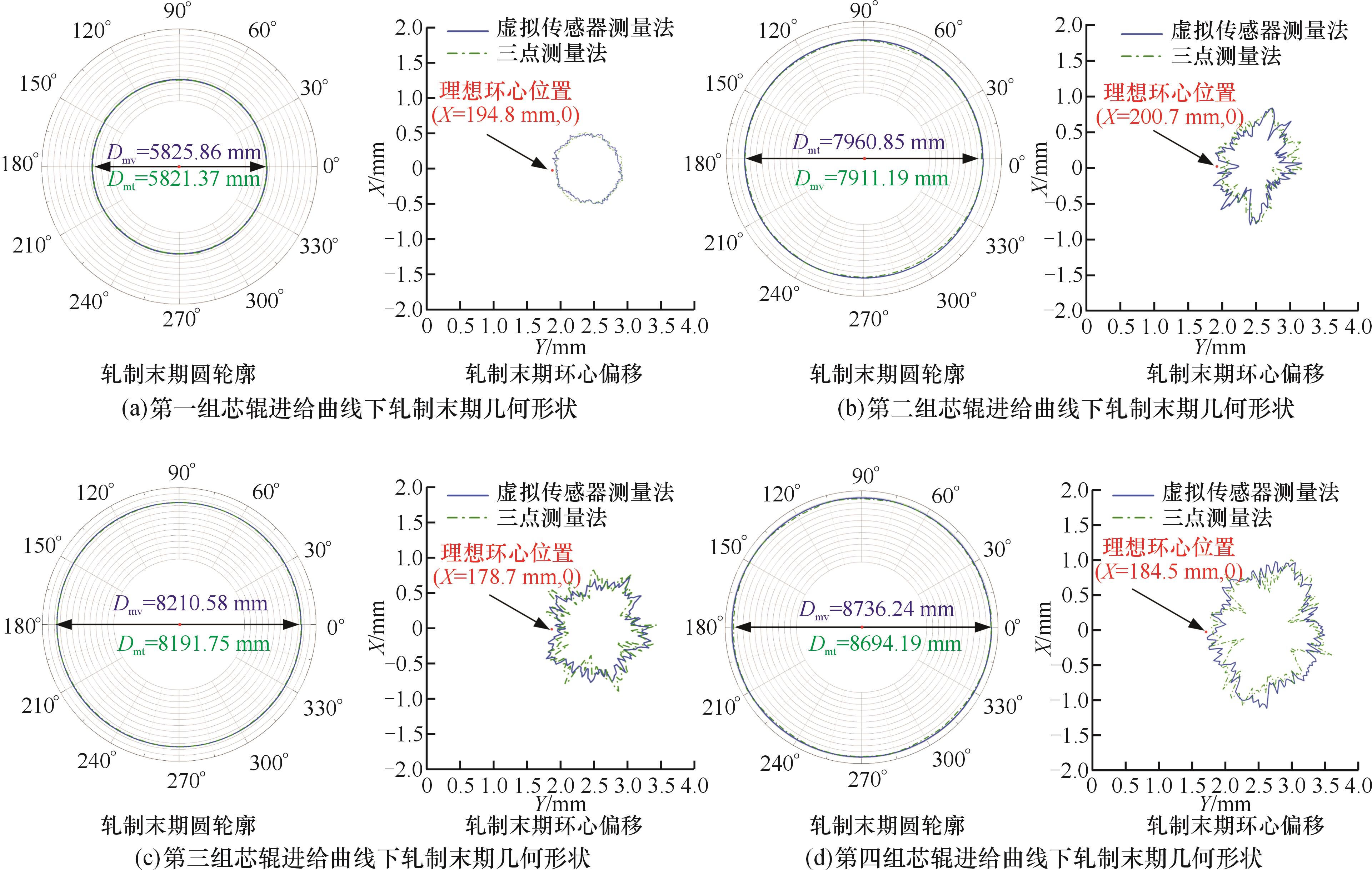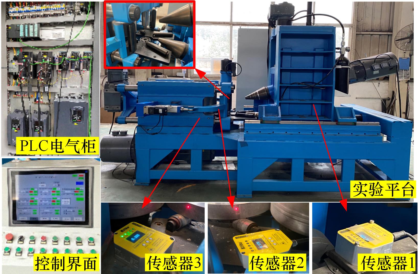 为提高超大型环件轧制几何形状测量精度,提出一种基于多源信息融合的分阶段测量方法。该方法利用三个激光位移传感器实时数据,结合轧制进给和整圆定径阶段特性,分阶段精确测量环件直径增长速度、环心偏移及圆度误差。建立了环件理论直径增长速度模型和外轮廓圆度误差模型,分析了环件直径增长速度和圆度误差的形成机制。通过在ABAQUS软件中构建ϕ10 m超大型环件轧制有限元仿真模型,将所提多源融合方法与工业相机拍摄、单点激光测量进行对比分析,验证了所提方法具有更高的准确性,并探究了芯辊进给速度对环件几何状态的影响。最终,通过缩比轧制实验验证了所提方法的有效性,轧制末期环件外轮廓拟合精度达91.7%。