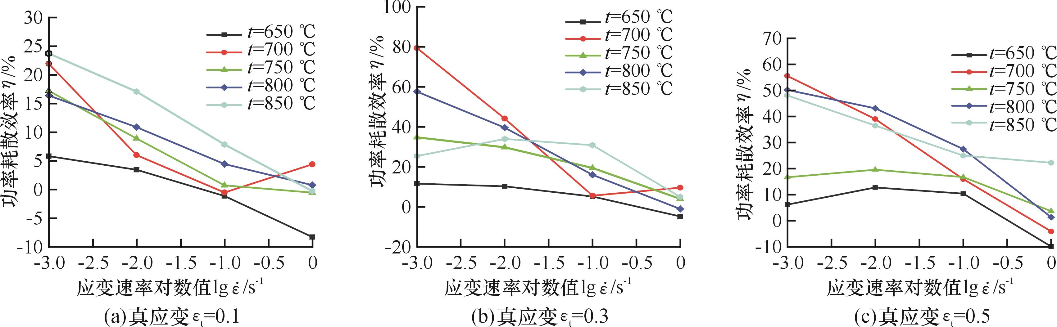 图5 不同应变下Ti2AlNb基合金的功率耗散效率三维分布图