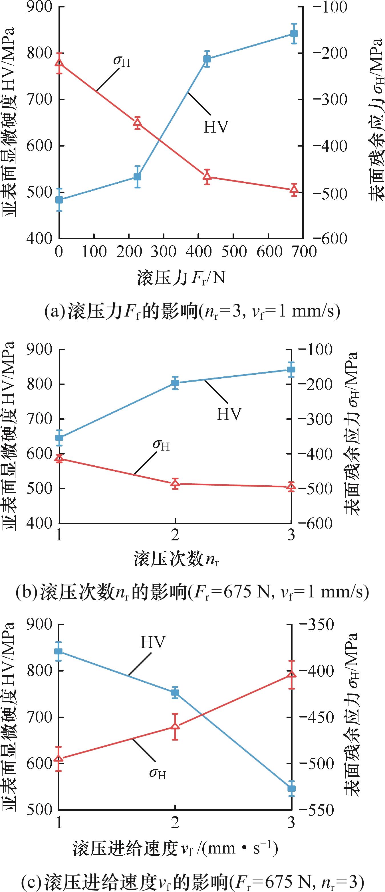 | 序号 | 滚压力Fr/N | 滚压进给速度vf/(mm·s | 滚压次数nr |