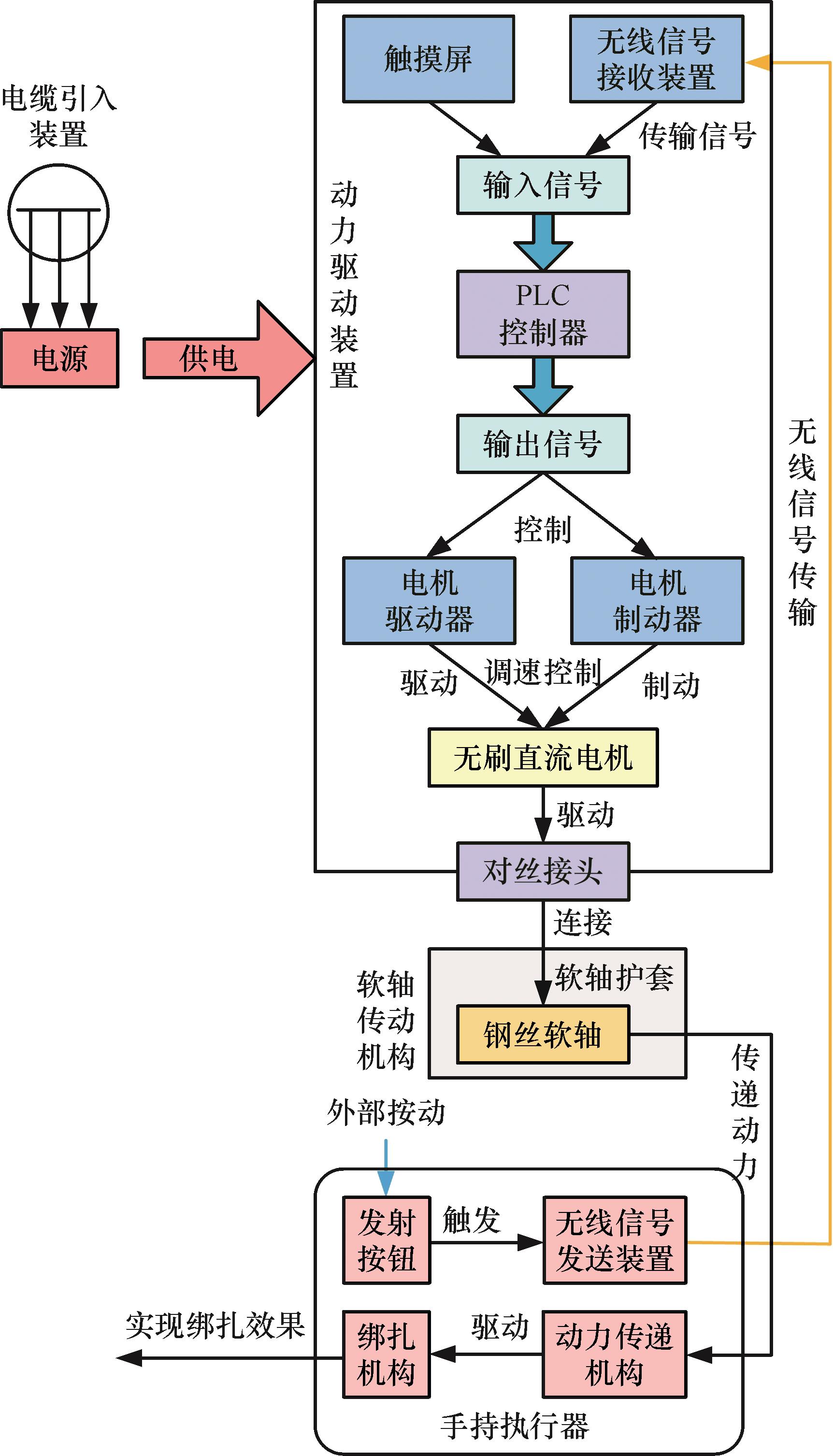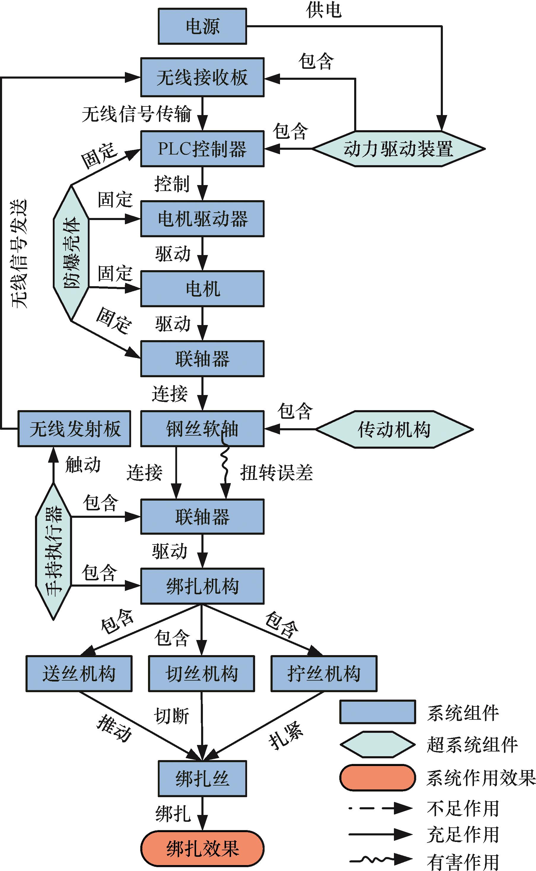 | 动态化原理 | 调整性能,在工作的各个阶段达到最优状态。 | 动力驱动装置壳体采用隔爆处理,满足井下作业要求;内部的PLC控制器可调节电机转速、转向,满足不同粗细、松紧程度的锚网绑扎作业要求。 |