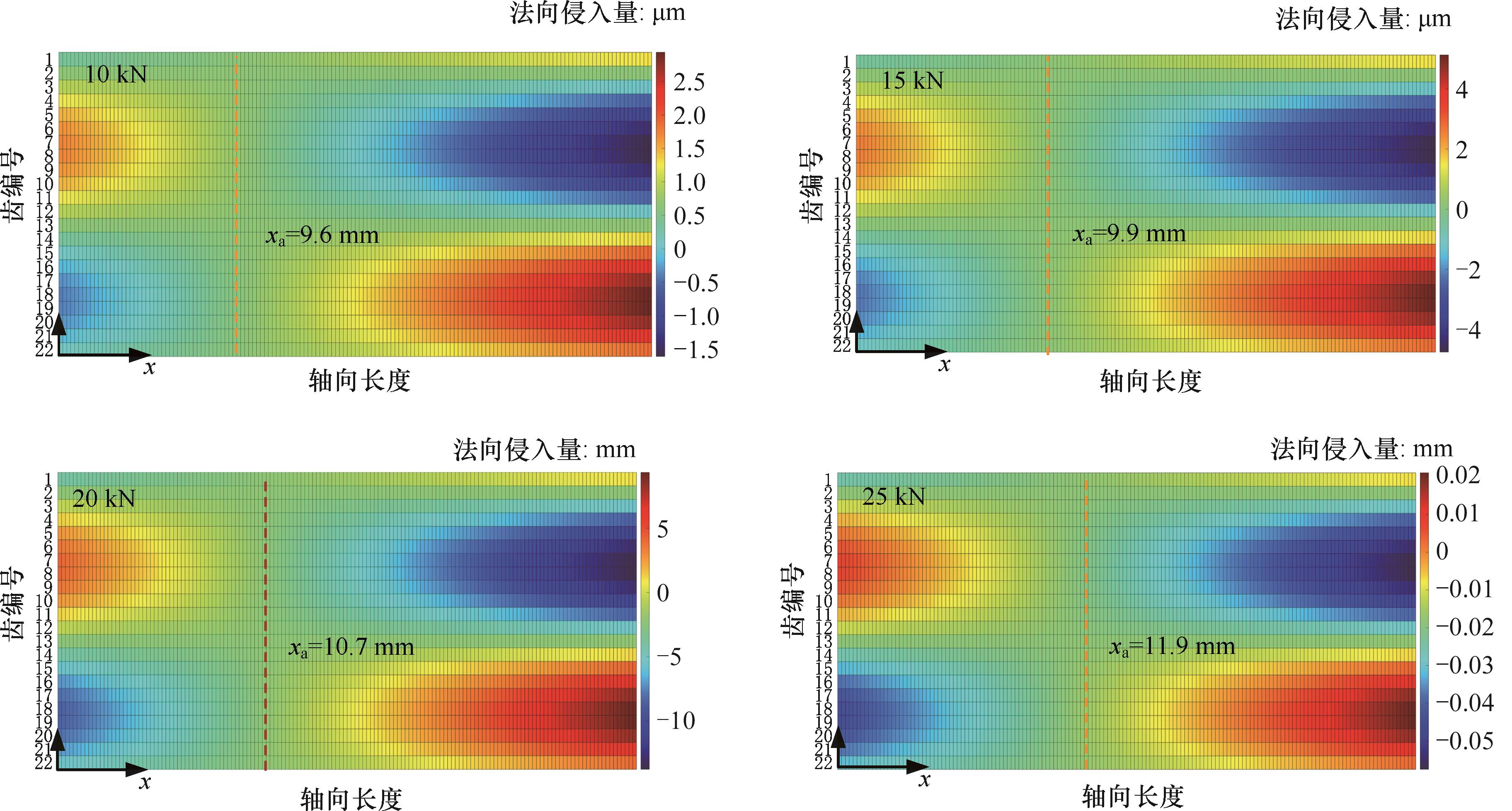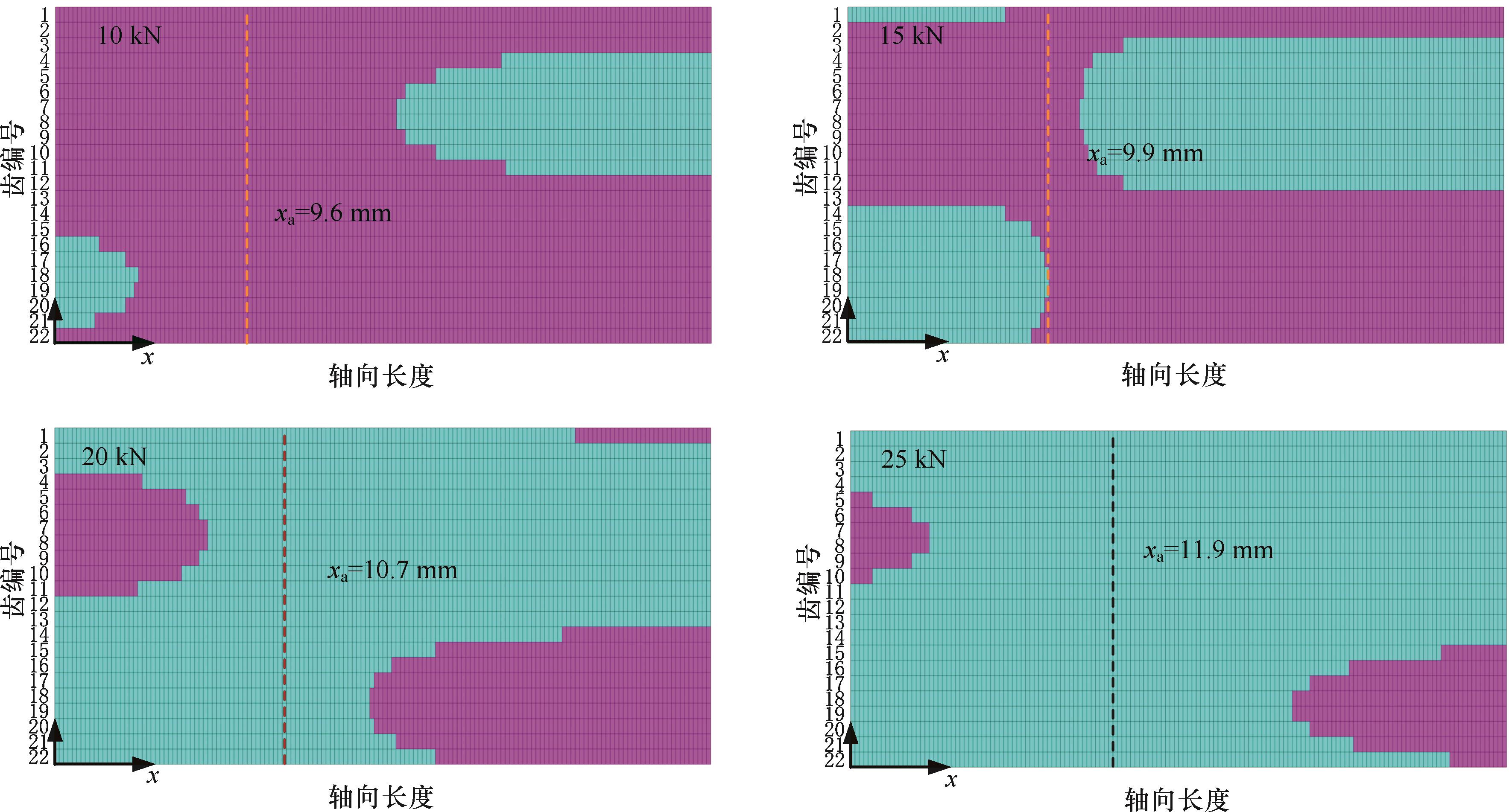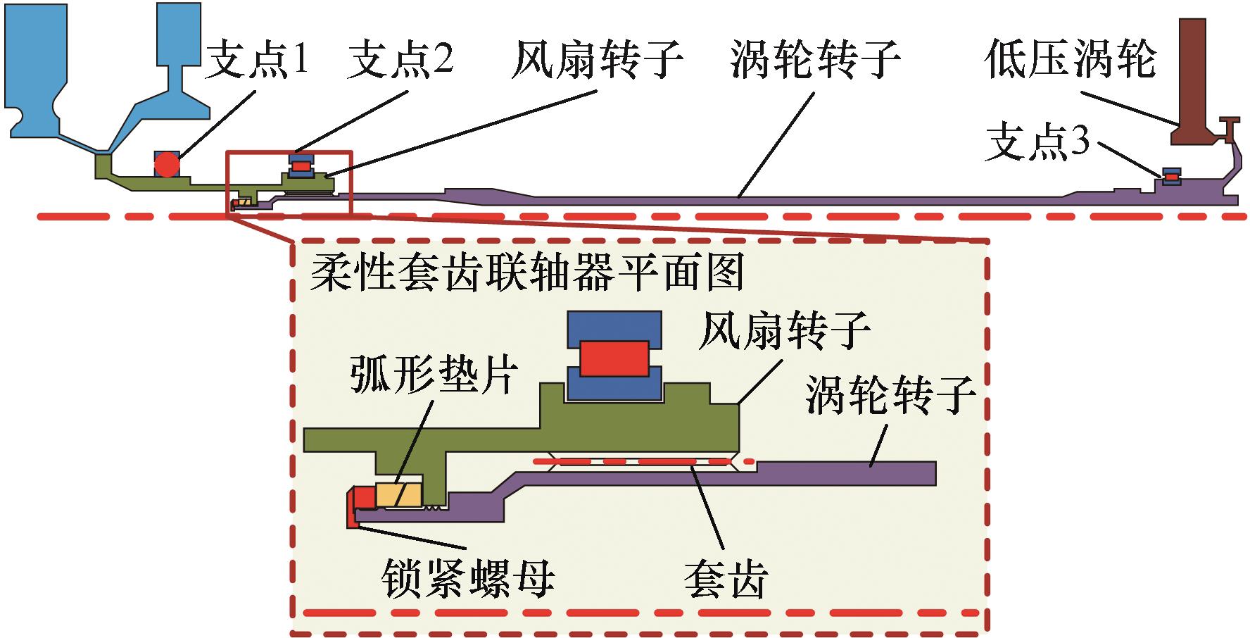 以发动机柔性套齿连接结构为对象,通过在套齿连接结构轴段微元各啮合点处引入接触-摩擦模型,并结合整体结构的几何关系、受力平衡关系和数值迭代法提出了一种套齿非线性刚度的建模与计算方法,通过与ANSYS有限元模型结果进行对比,验证了所提计算方法的高求解效率和求解准确性。利用所提求解方法详细分析了套齿连接结构刚度非线性特征及关键参数的影响规律,并结合啮合齿对接触状态的变化规律揭示了其刚度非线性变化的内在机理。结果表明:套齿连接结构刚度随线位移的增加逐渐下降,但下降速率逐渐减小,此过程中套齿连接结构啮合齿接触面积减小是刚度降低的根本原因。接触面摩擦因数、啮合刚度、套齿齿宽以及扭矩增加时,套齿连接结构刚度均有所提高,其中扭矩的影响最为明显。