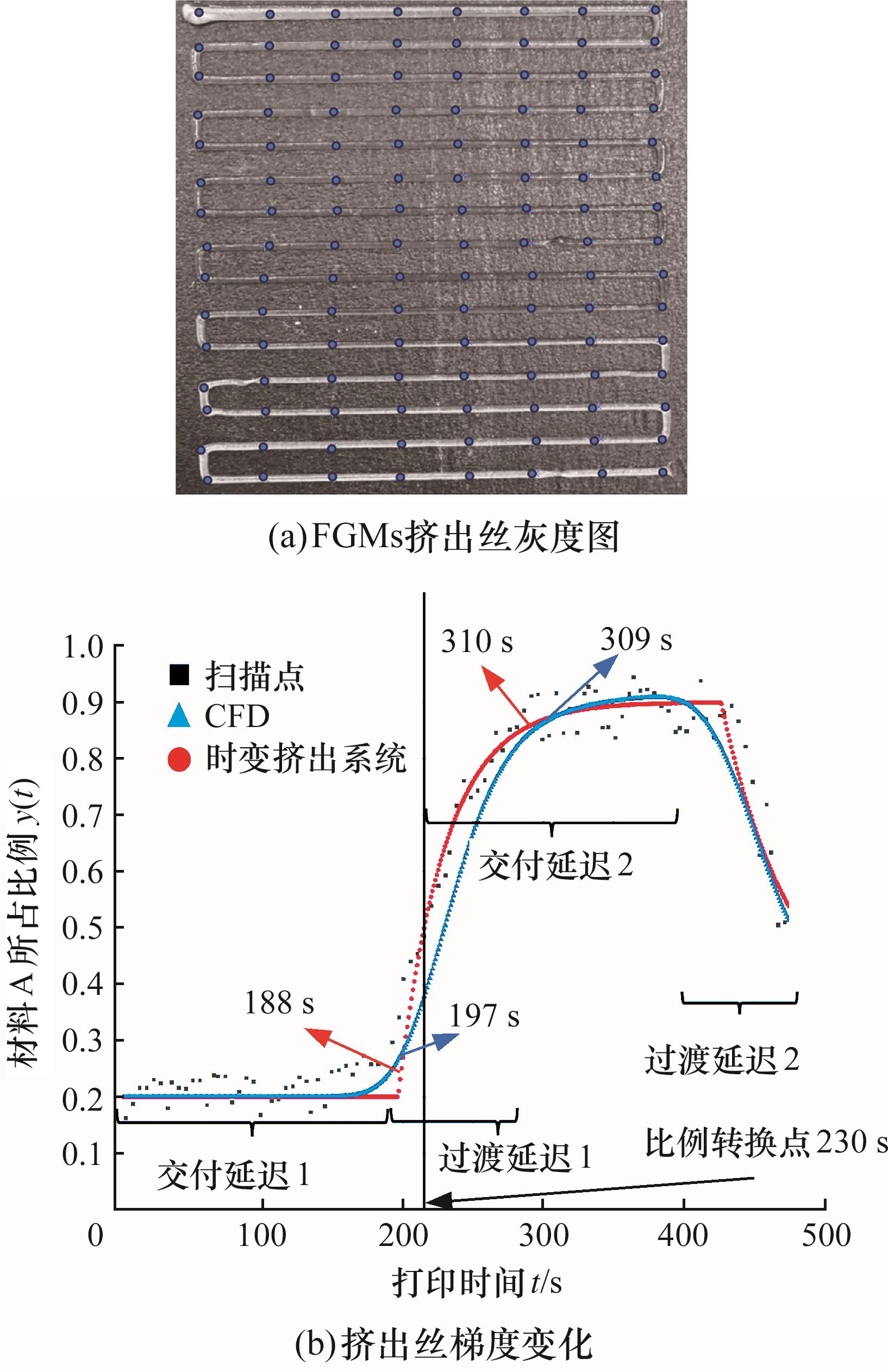 高精度的计算流体力学表征模型会带来极高的时间成本,这给具有高频次复杂梯度变化的功能梯度材料零件的表征带来挑战。建立了以贝叶斯正则化神经网络为预测模型的时变挤出系统,首先通过高精度的计算流体动力学仿真模型获取数据集并用于训练神经网络模型,将材料目标比例、料腔中初始比例、双进料口流量总和以及适配的螺杆转速作为输入参数,标记交付延迟时间以及过渡延迟时间作为输出参数,再将训练后贝叶斯正则化神经网络融合经典控制理论对系统描述的方法构建完整的时变挤出系统。最后通过打印功能梯度材料样件验证了所构建的计算流体动力学仿真模型以及时变挤出系统的准确性与适用性。