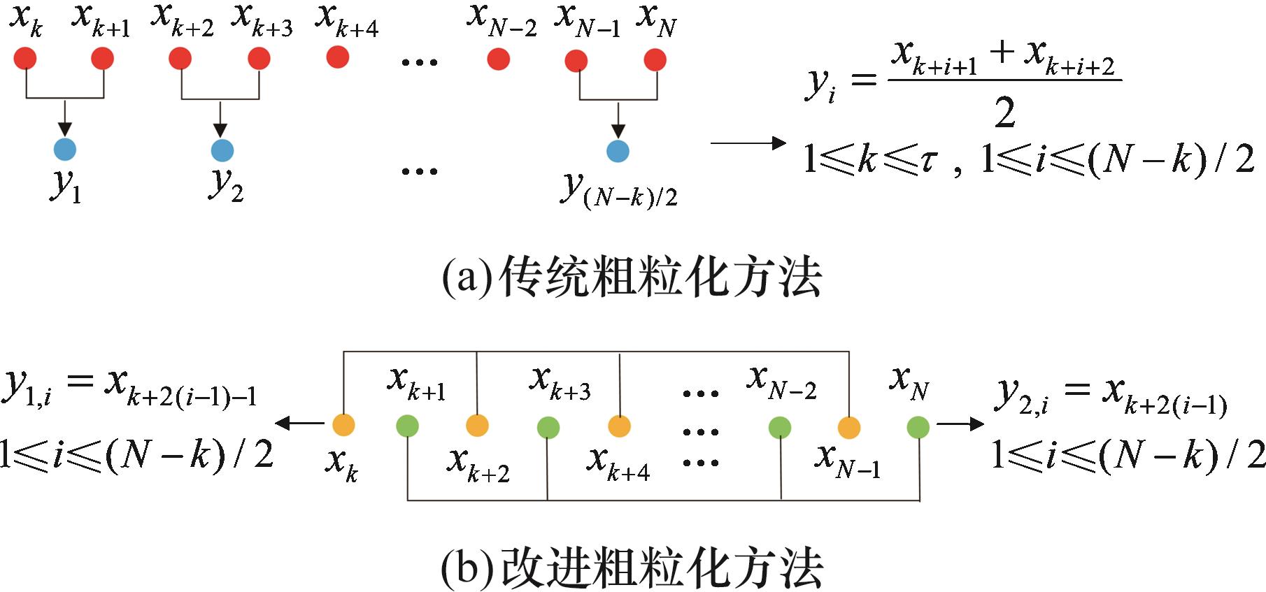 针对传统多尺度样本熵(MSE)在粗粒化过程中易造成特征信息丢失、在尺度因子较大时故障信号中的特征信息不易提取等问题,提出一种基于改进的精细复合多尺度样本熵(IRCMSE)与算术优化算法(AOA)优化贝叶斯网络的滚动轴承故障诊断方法。将传统粗粒化过程中求均值的处理方式替换为交叉采样的方式,得到每一尺度的时间序列,并改变不同尺度下计算熵值的方法,提取时间序列的特征信息。利用IRCMSE提取滚动轴承故障特征信息,构成故障特征样本,将故障特征样本输入到AOA优化后的贝叶斯网络模型中进行故障识别。将改进方法与基于多尺度样本熵、多尺度散布熵(MDE)和精细复合多尺度样本熵(RCMSE)的故障诊断方法进行对比实验,验证了所提方法的可行性且具有更高的故障识别率。
