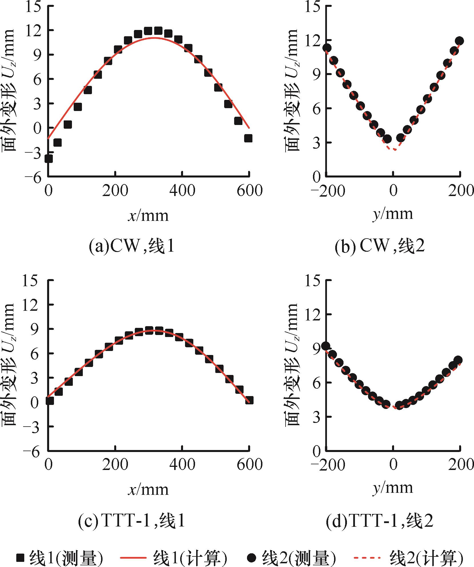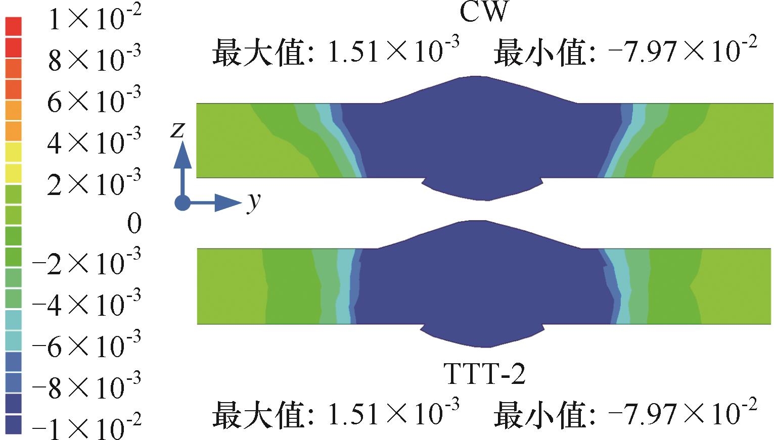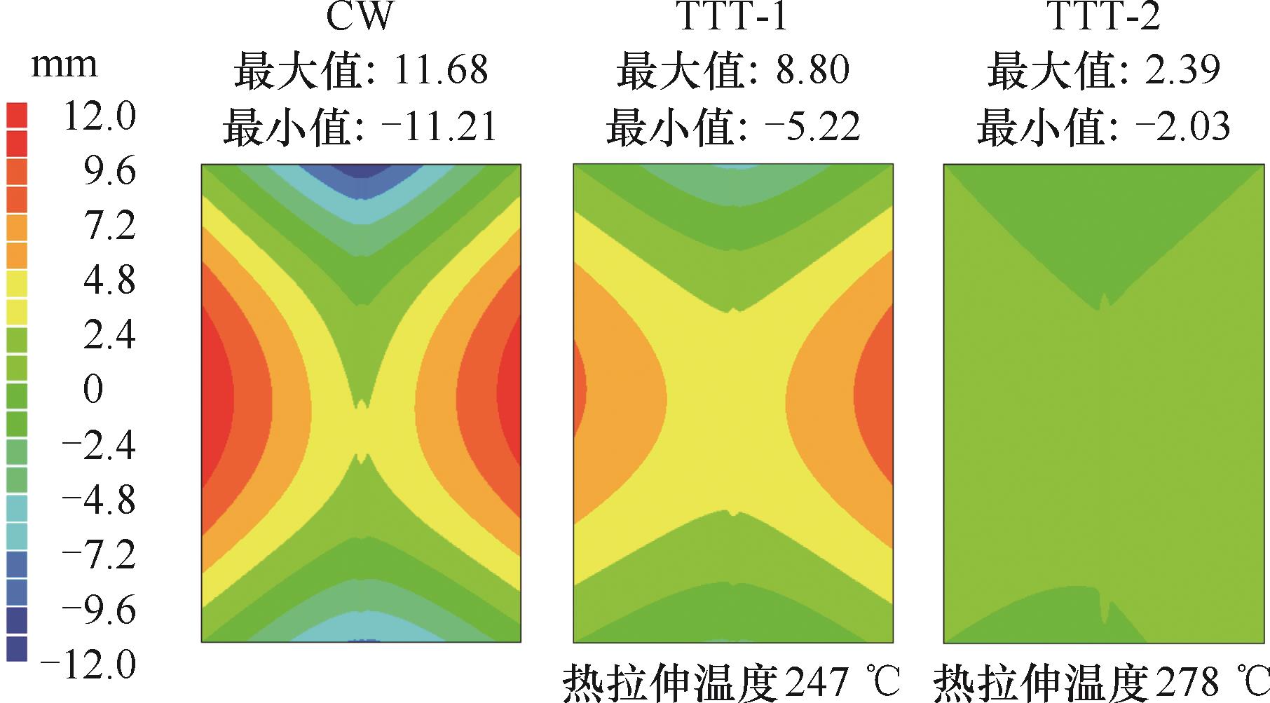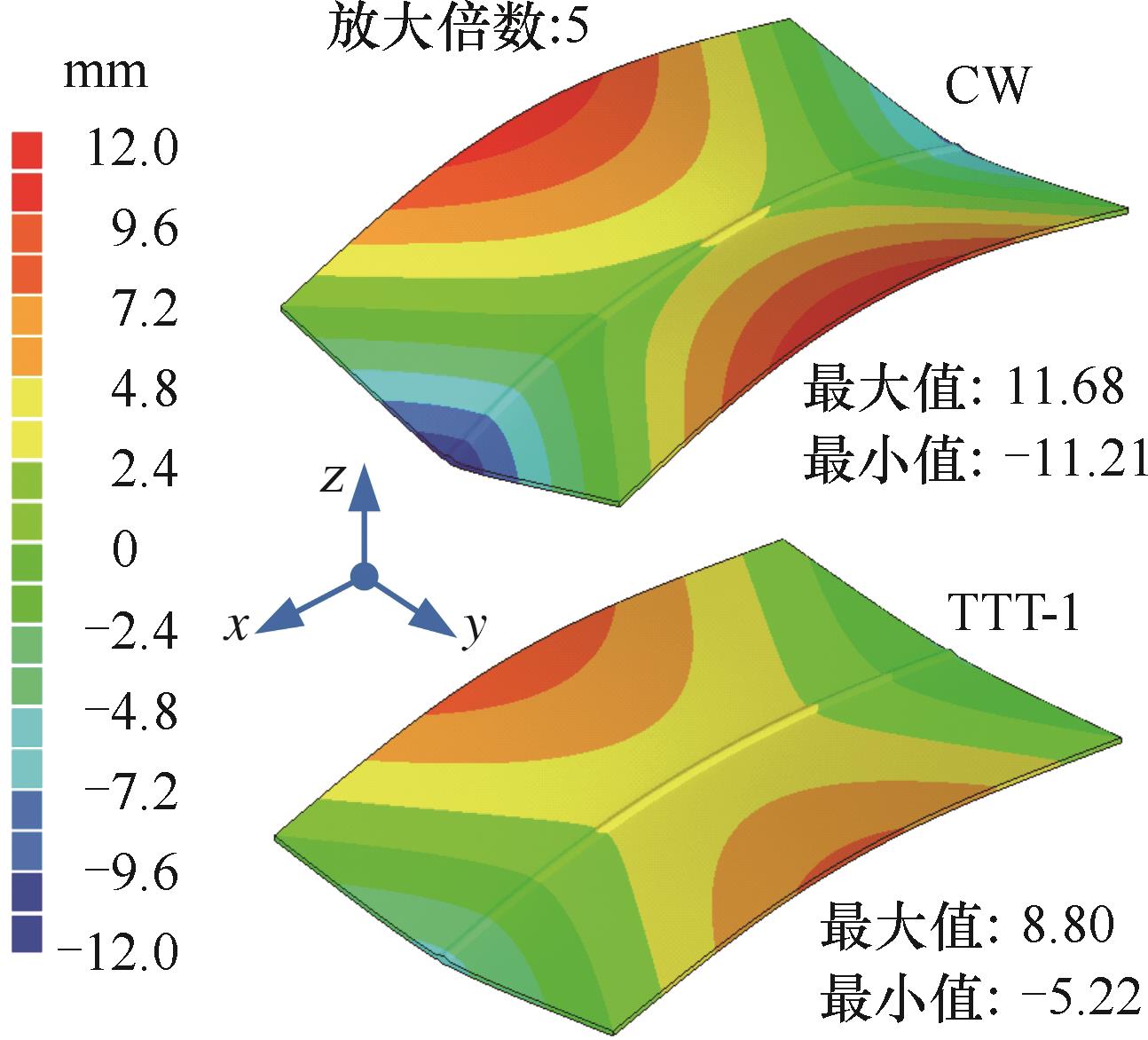 高强钢AH36薄板焊接失稳变形严重影响制造精度,且难以通过焊后矫形手段完全消除。随焊热拉伸工艺是一种有效控制薄板焊接失稳变形的方法。以感应加热为辅助热源搭建随焊热拉伸焊接试验平台,进行高强钢AH36薄板常规对接焊和随焊热拉伸工艺试验,待试板冷却至室温后,通过三坐标测量仪测量接头变形,在常规焊接下最大相对面外变形为23.88 mm,随焊热拉伸下减小至13.68 mm。随后建立接头有限元模型,进行热-弹-塑性有限元分析,计算得到的结果与测量结果十分吻合,且通过调整热拉伸温度,接头最大相对面外变形减小至4.42 mm。最后基于固有应变理论分析了高强钢AH36薄板焊接失稳变形产生的原因以及随焊热拉伸工艺的控制机理:辅助热源形成的热拉伸作用改变了母材对焊缝的拘束程度,导致升温过程中产生了更小的压缩塑性应变,而冷却过程中产生了更大的拉伸塑性应变,使得焊缝处固有应变减小,纵向收缩力减小26.4%;瞬时变形降低使得横向固有弯曲力矩减小95.2%,减小了失稳产生的初始扰动,进一步控制了薄板焊接失稳变形。