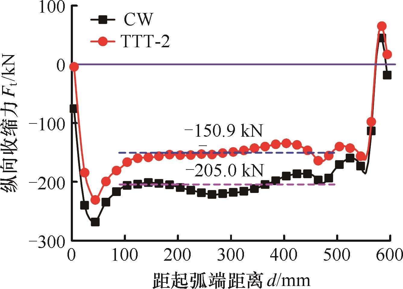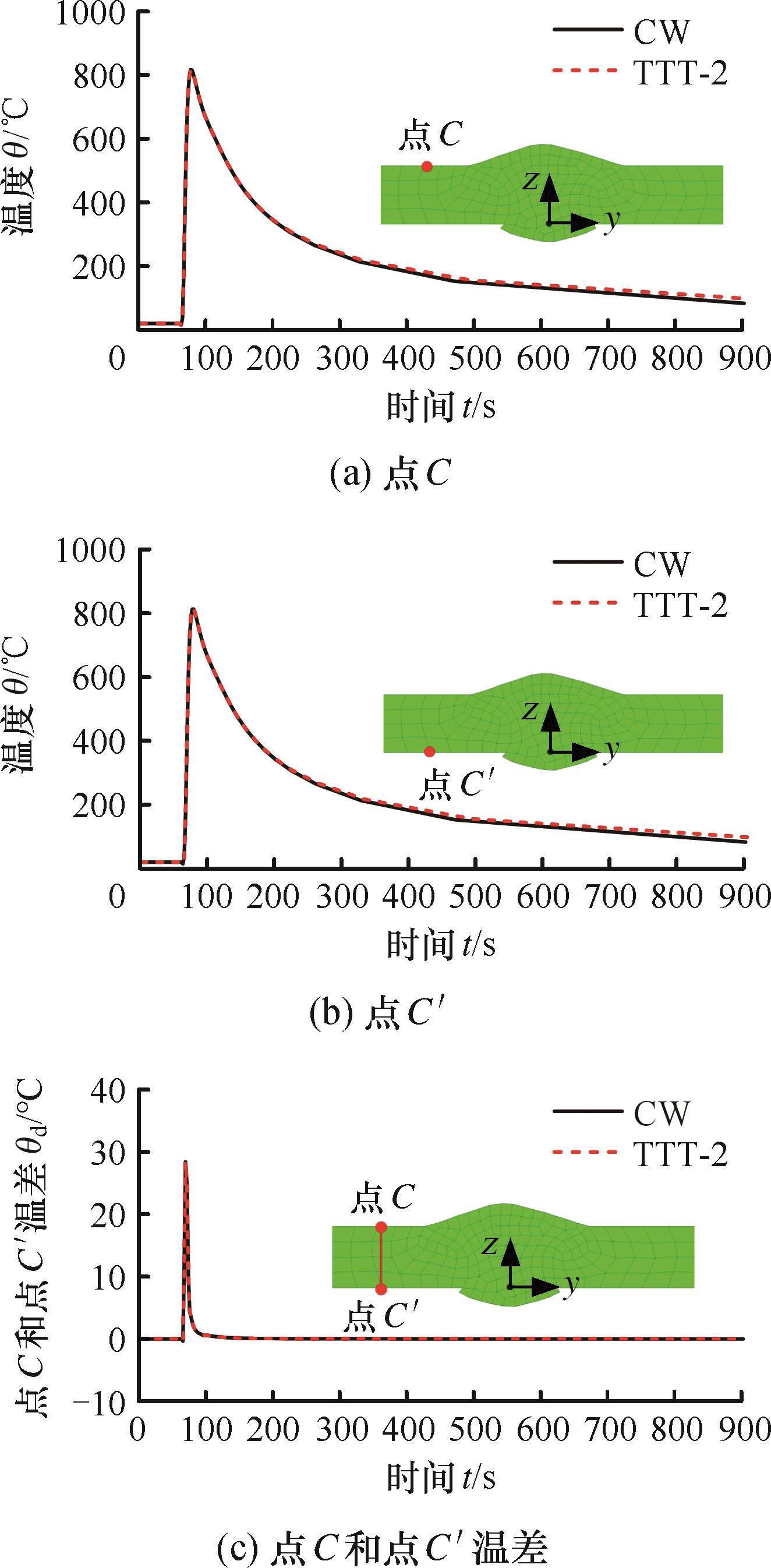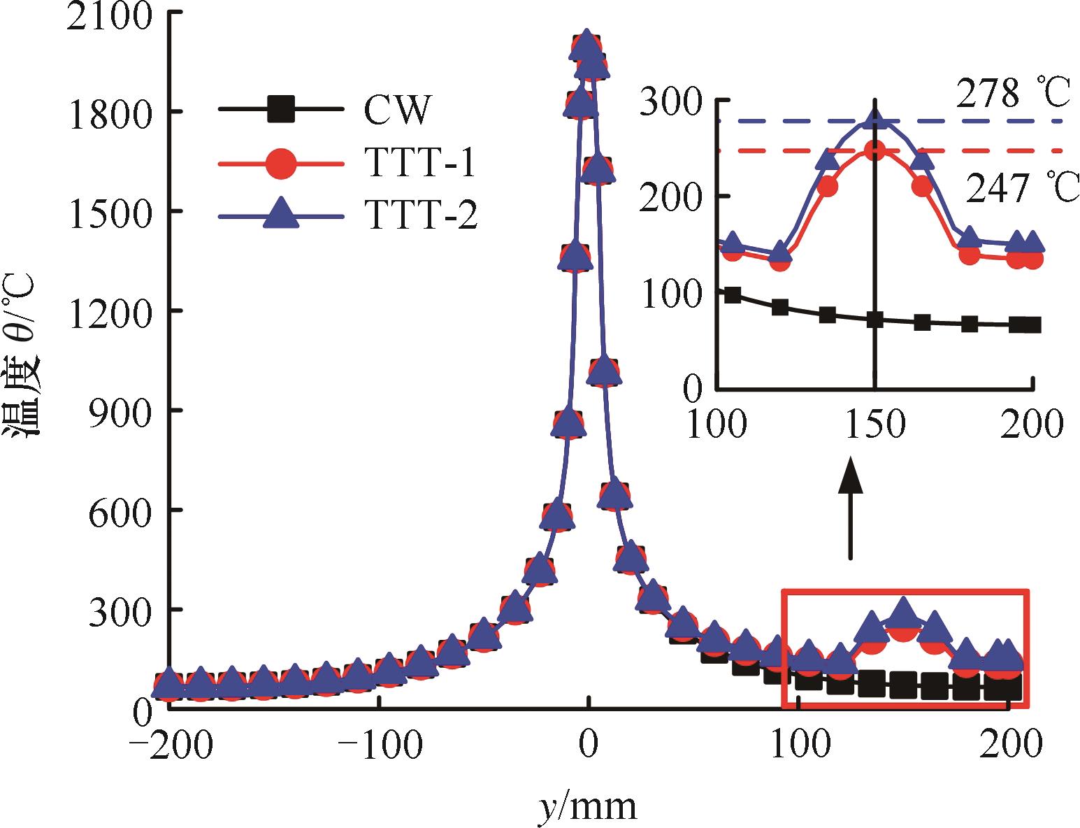 The welding buckling distortion in thin plates of high-strength steels AH36 seriously affected the manufacturing accuracy and was difficult to be completely eliminated by means of correction after welding. TTT was an effective method to control buckling distortion during thin plates welding. A TTT platform was built with induction heating as the auxiliary heat source to conduct conventional welding and TTT experiments in thin plates of high-strength steels AH36 . After the joints were cooled to room temperature, welding distortion was measured by the three-coordinate measuring machine. The maximum relative out-of-plane deformation is as 23.88 mm under conventional welding, and decreases to 13.68 mm under TTT processes. Subsequently, the FE model of butt welded joint was established and thermal elastic plastic FE analyses were carried out for conventional welding and TTT processes. The results are in good agreement with the measured ones. Meanwhile, the maximum relative out-of-plane deformation could be reduced to 4.42 mm with modifying the temperature during TTT processes. Finally, the causes of welding buckling distortion and the control mechanism of TTT during thin plates welding processes with high-strength steels AH36 were clarified based on the welding inherent strain theory. The thermal tensile action formed by the auxiliary heat source changes the constraint degree of the base materials on the weld, which results in less compressive plastic strain during the heating processes and more tensile plastic strain during the cooling processes, so that the inherent strain at the weld is decreased. The tendon force is reduced by 26.4%. The reduction of instantaneous deformation decrease the transverse inherent bending moment by 95.2%, which reduces the initial disturbance resulting in welding buckling distortions, so as to further control the welding buckling distortion of thin plate structures.