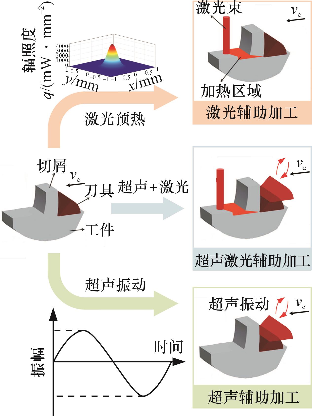 | 超声激光辅助加工 | 降低表面粗糙度 | 超声激光耦合减小刀具磨损,同时实现脆性材料的延性切削 | |