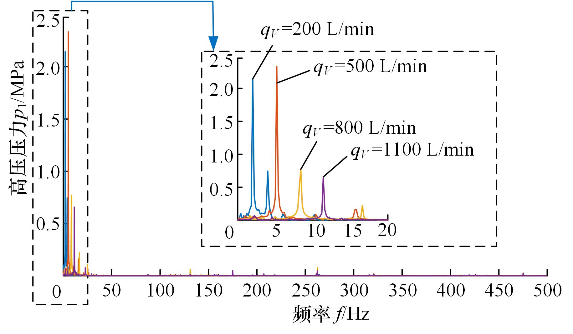 流量/ (L·min-1) | 压力/MPa | 频率/Hz | ||||